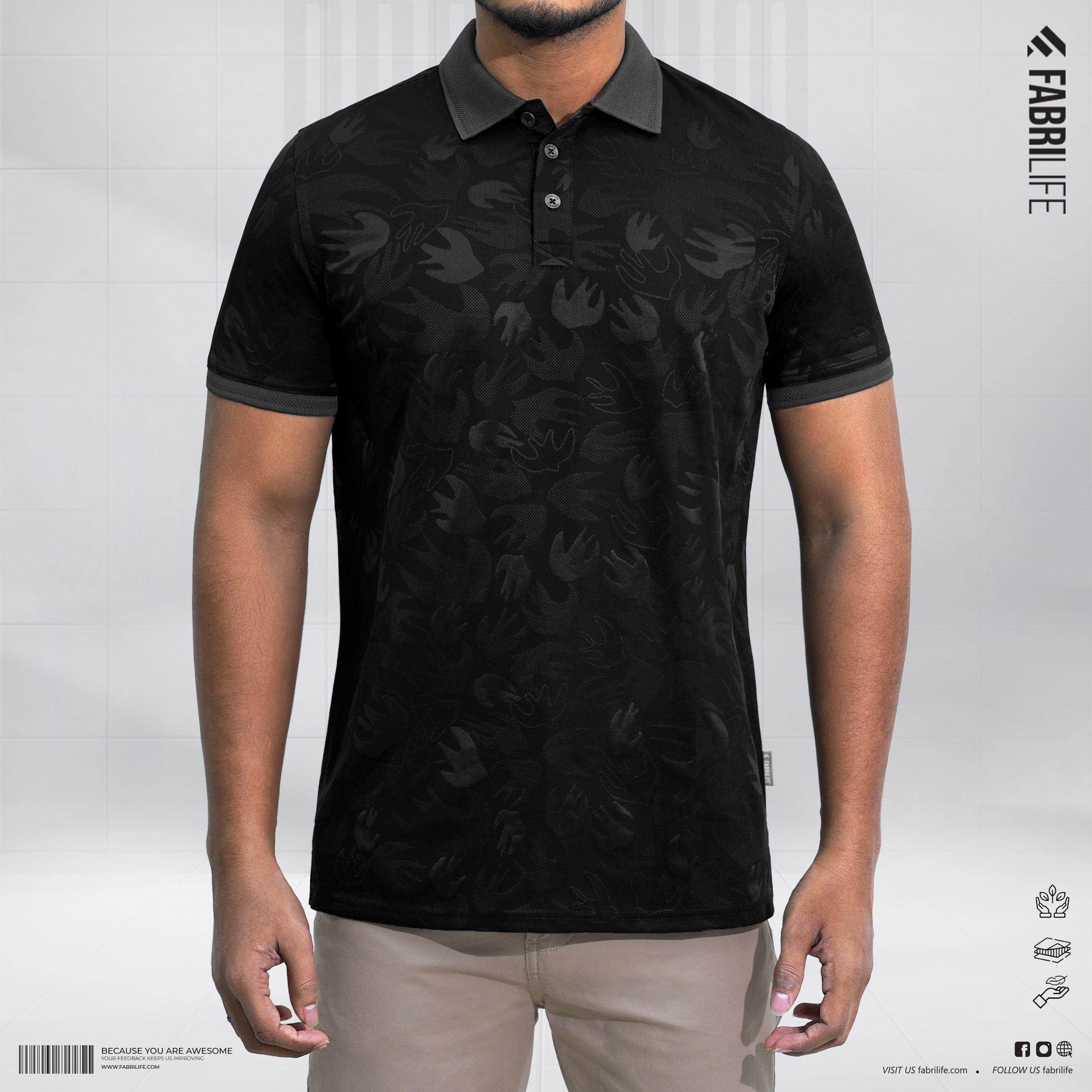 The Polo t-shirt is made with premium 100% polyester Jacquard fabric, providing a soft touch that ensures comfort for all-day wear.